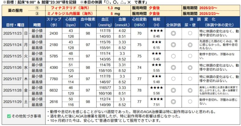 記録開始時の基準値や運営者の生活習慣については、以下の関連記事からご覧ください。
