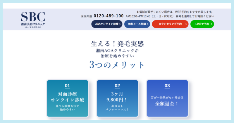 薄毛治療の高品質な治療をリーズナブルな価格で受けたいと思っているアナタは、今すぐ「湘南美容クリニック」のオンライン予約をしてみましょう。