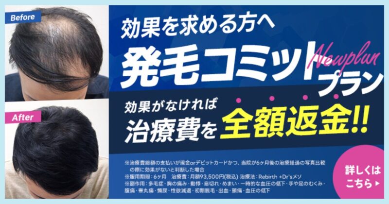 | 2種類併用 プラン | フィナステリド (VTSR) ミノキシジル (Rebirth A) | 記載なし オリジナル | 1.0mg 2.5mg | 28錠 記載なし | 1ヶ月 1ヶ月 | 15,700円 (税込み) | 18,600円 (税込み) |