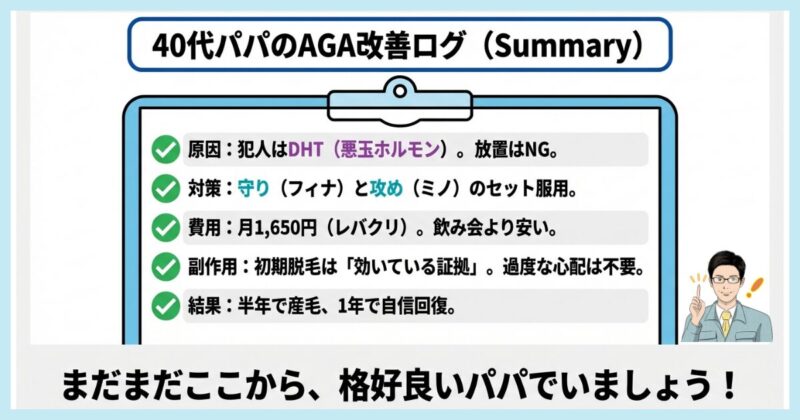 【40代パパの薄毛対策】AGA治療薬って実際どう?効果・費用・副作用のリアルを本音でレビュー