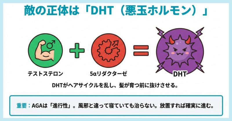 これがAGAの正体です。 そして一番厄介なのが、「AGAは進行性である」ということ。