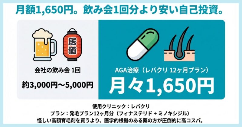 効果のない怪しい高額育毛剤を買い続けるより、よっぽどコスパが良いと気付きました。