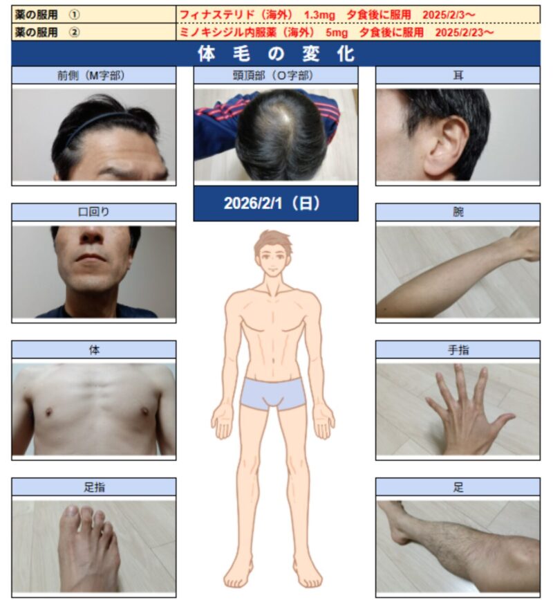 • 腕:腕の毛が確実に濃くなている(変化あり)