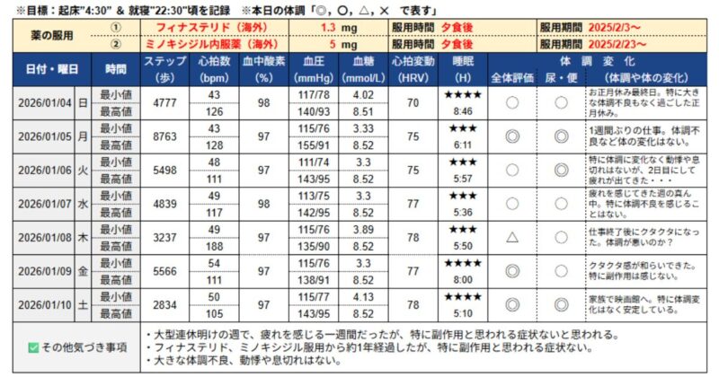 記録開始時の基準値や運営者の生活習慣については、以下の関連記事からご覧ください。