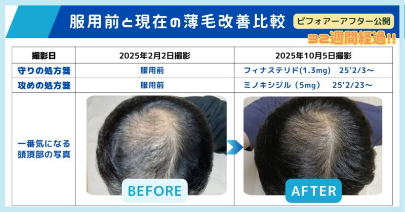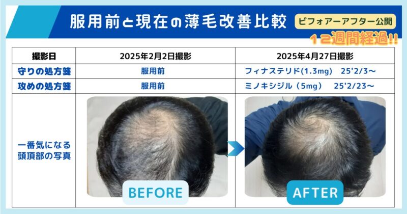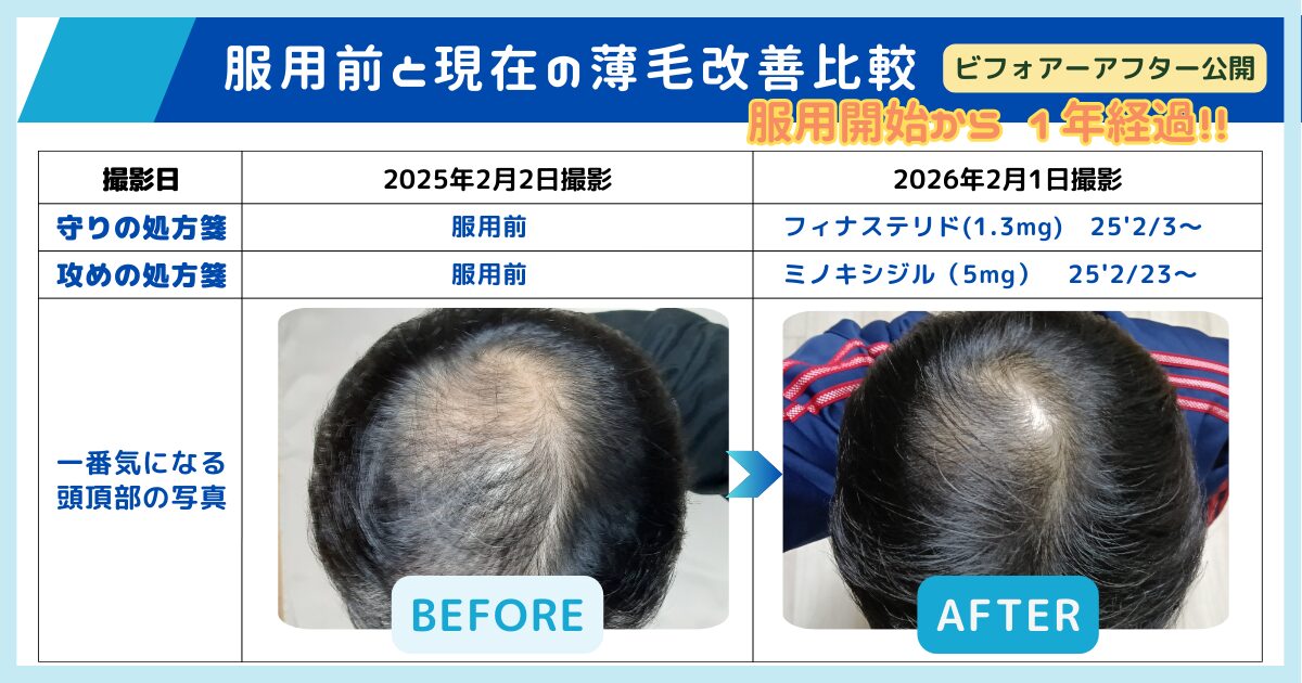 この記事では、私自身が約1年間AGA治療薬を継続して実感した改善事例をもとに、